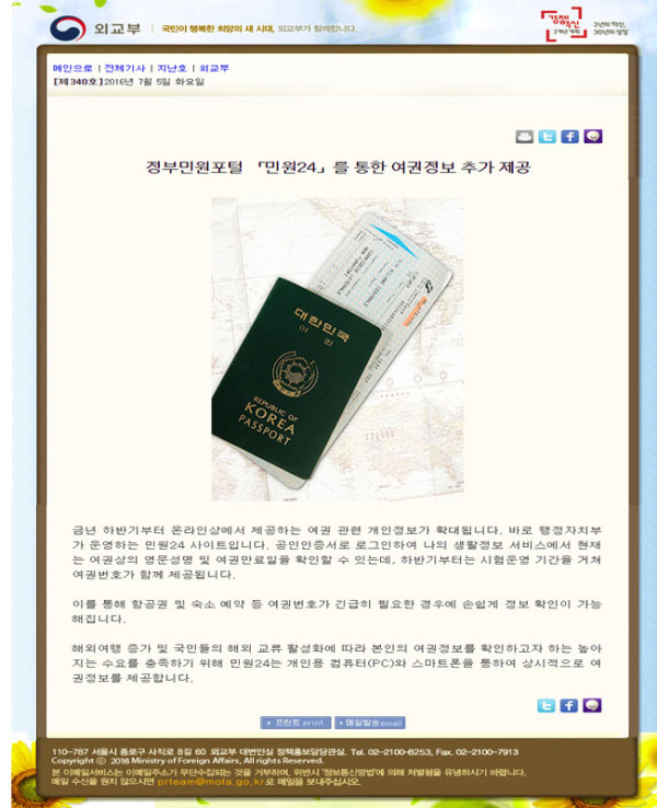 정부민원포털「민원24를 통한 여권정보 추가 제공