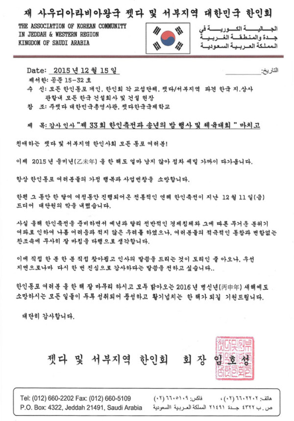 감사인사 페이지 정보 작성자 click758 작성일15-12-21 02:46 조회21,160회 댓글0건 이전글 다음글 목록 본문 한인회 홈페이지 http://jeddah.korean.net/ 댓글목록 등록된 댓글이 없습니다. 이전글 다음글 목록