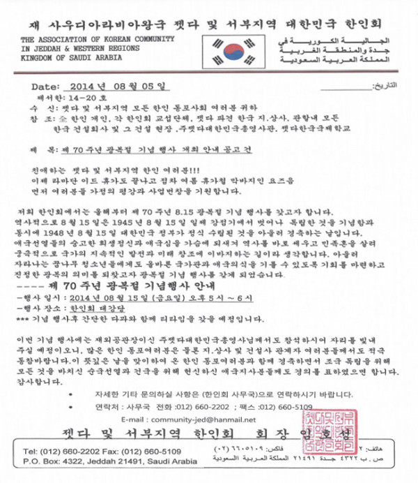 *** 한인회 행사 안내 - 공문 (제서한 14-20호)
