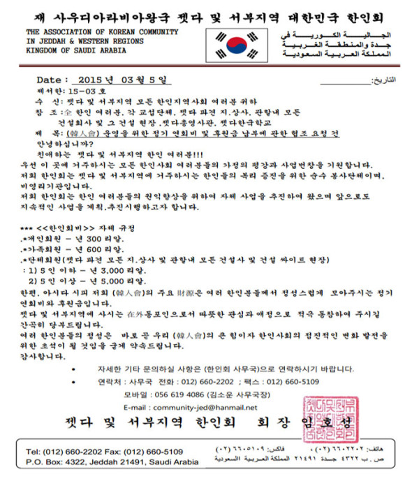 한인회 홈페이지 http://jeddah.korean.net/